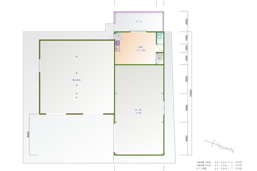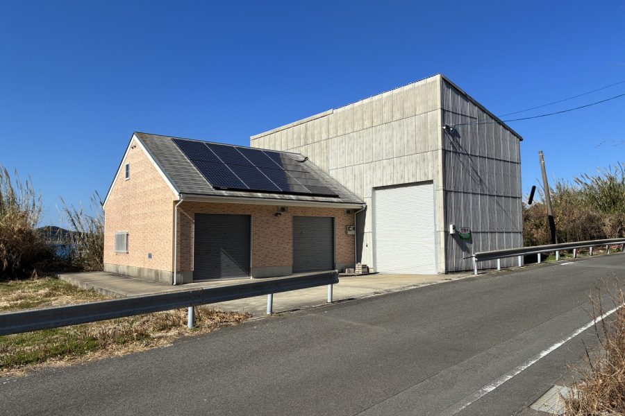 2階建て、電動シャッター付きの倉庫です。