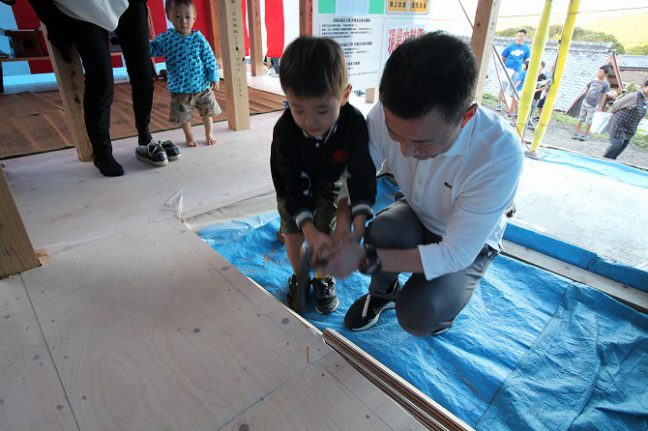 もみの内装材を貼っているので、現場は、もみの香りがしています。