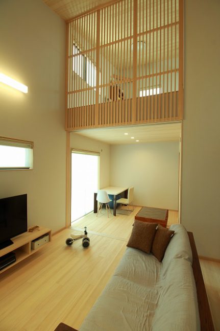 2階のフリースペースとは格子を通してつながり、